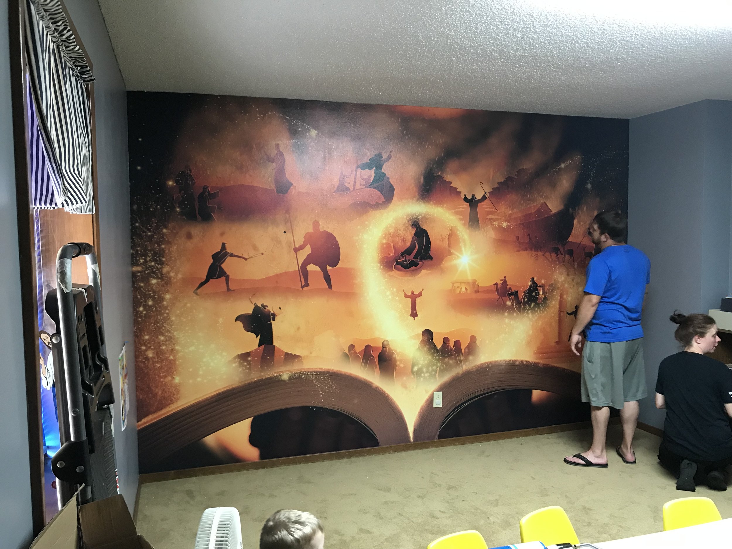 Once the design is printed, the scheduled date arrives and the walls are prepped, we begin the installation process.
